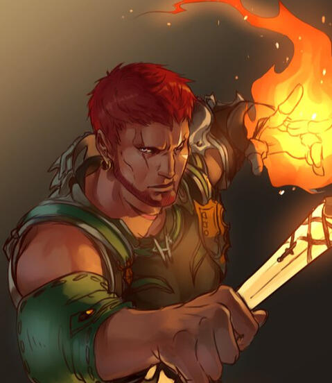 a cousin and one of the few remaining of the familial line. Trained as a Fist of Rhalgr, a talented smithy, and a knowledgeable mage of impressive skill, Fenix and his wife A'eyshn are a quirky pair.