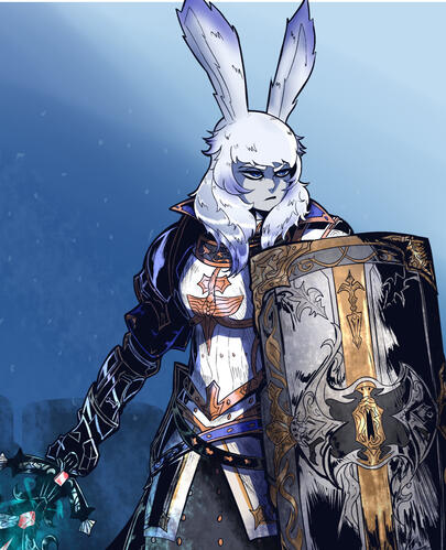 Arlene is the sworn knight and stalwart shield, ready to protect at any time. A trained Knights Dragoon that has lost the glamour disguising her, this temperamental half-Viera, half-Elezen is tactically clever but awkward socially.